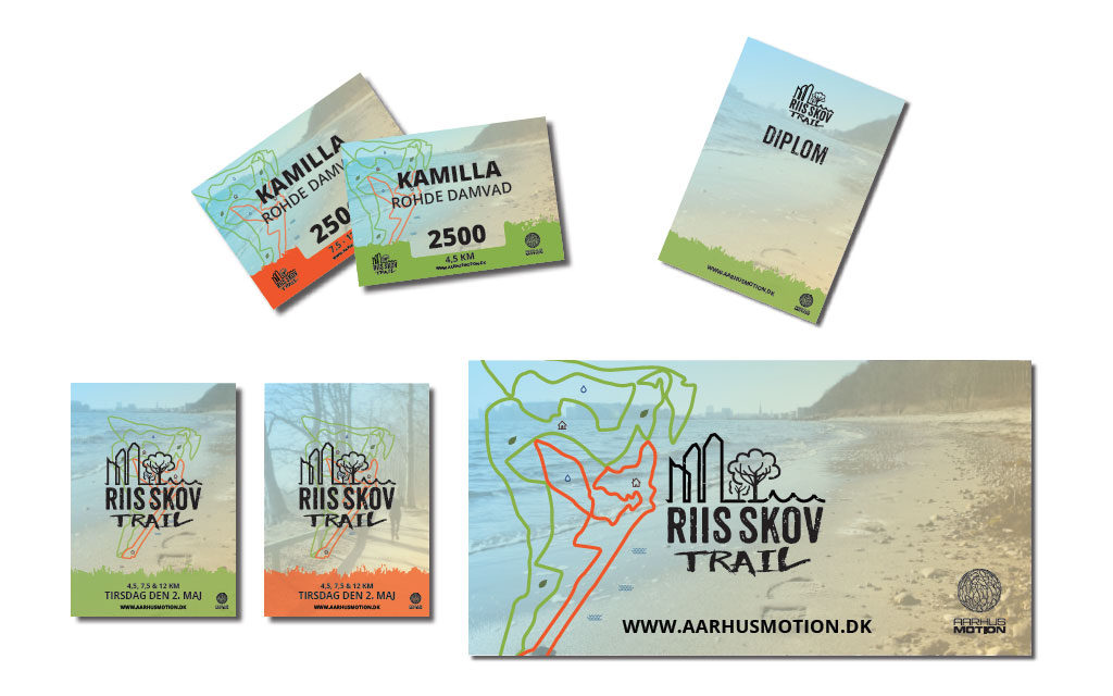 In spring 2017 I finished my studies at Business Academy Aarhus. This I did with a large exams project, which I did in correlation with my internship at Aarhus Motion. My task was to make the visual identity for the event Riis Skov Trail from start to finish. The event was to be a spring trail run so the identity should reflect this. In this project I developed the logo, color theme, photo style, characters, website and all content for both digital and printed media.